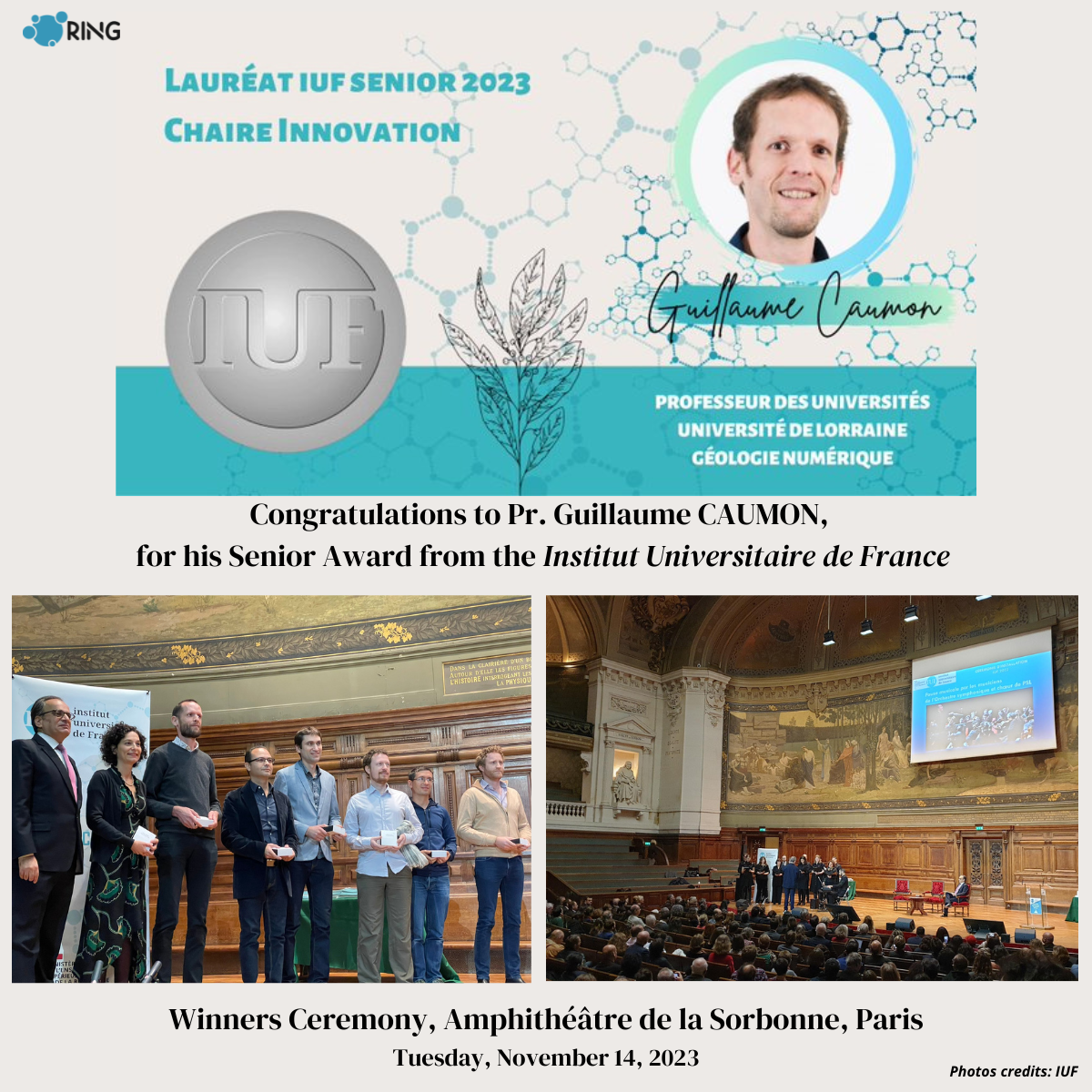 The postdoc will join the GeoRessources Laboratory's RING team, a multidisciplinary group of 12-15 researchers and graduate students with strong academic and industrial collaborations. Close collaboration is expected with Prof. Guillaume Caumon, Dr. Ayoub Belhachmi, Dr. Modeste Irakarama, Dr. Jeremie Giraud, and Dr. Frédéric Dubois. The position is part of the Digital Earth project under the PEPR Sous-sol, Bien Commun initiative, providing access to a broad research network.